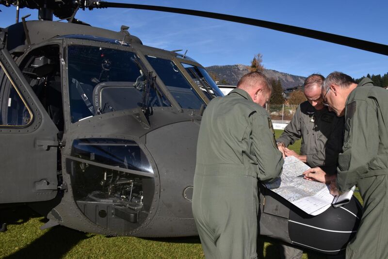 Im Zuge des Fluges besichtigten die Einsatzkräfte vier vordefinierte Flächen welche in der engeren Auswahl waren. Nach dem Flug, der bei strahlendem Wetter und ausgezeichneter Fernsicht stattfand, standen die Piloten und die Bordtechniker für Fragen und Antworten zur Verfügung.