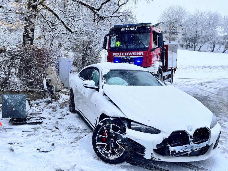Der erste Schneefall des Jahres sorgte für rutschige Fahrbahnen und somit zu zwei Einsätze der Feuerwehr Abtenau. Am Vormittag prallte eine Lenkerin mit ihrem Fahrzeug im Ortsteil Döllerhof gegen eine Mauer und zwei Stromkästen. In weiterer Folge schleuderte der Wagen noch gegen eine Straßenlaterne, die daraufhin umstürzte. Die Feuerwehr sicherte den unter Strom stehenden Bereich und die Unfallstelle ab. Nachdem der Techniker der SalzburgAG den Strom abgeschaltet hat, wurde das nicht mehr fahrtüchtige Fahrzeug mit dem Versorgungsfahrzeug auf einen nahen Abstellplatz geschleppt.