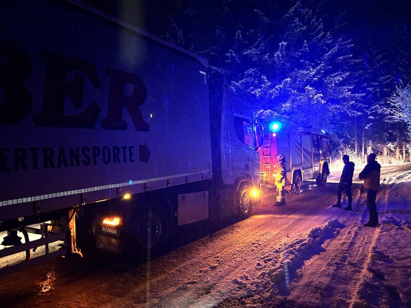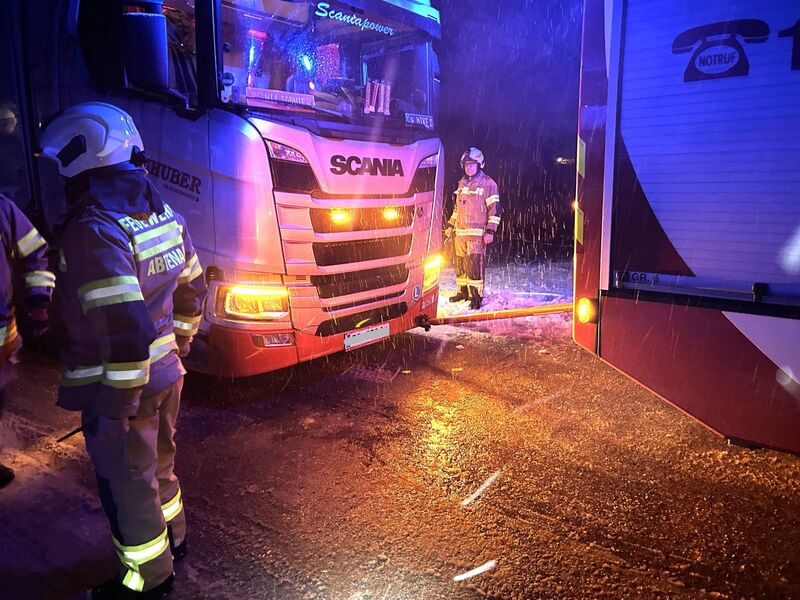 Am Abend blieb im unteren Bereich der Austraße ein leerer Sattelschlepper trotz angelegter Schneeketten hängen. Eine Mannschaft kam dem Lenker mit dem Rüstlöschfahrzeug zu Hilfe und zog das Schwerfahrzeug mit Hilfe der Schleppstange bis zum oberen Ende der Austraße.