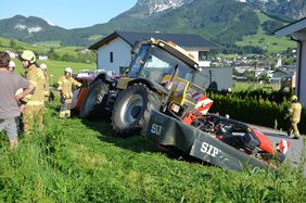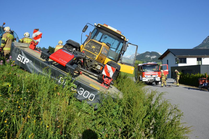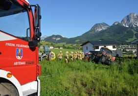 Ein Landwirt kam mit seinem Traktor bei Mäharbeiten auf einer Böschung in eine bedrohliche Schieflage und alarmierte sicherheitshalber die Feuerwehr. Tank Abtenau sicherte den schweren Traktor mit einem Hubzug und danach konnte der Traktor innerhalb kurzer Zeit mit der Einbauseilwinde des Rüstlöschfahrzeuges geborgen werden. Nach der Bergung nahm der dankbare Landwirt die Mäharbeiten wieder auf.