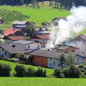 Die FF Abtenau wurde um 12.27 Uhr über Sirene und Rufempfänger zu einem Dachstuhlbrand bei einem Neubau im Ortsteil Fischbach alarmiert. Der Brand brach im Bereich des Carports aus und hat in weiterer Folge auf die Fassade sowie dem Dachstuhl übergegriffen. Bei der Ankunft der Feuerwehr schlugen meterhohe Flammen aus dem Dachstuhl. Da sich bereits während der Anfahrt im Tanklösch- und Rüstlöschfahrzeuge zwei Atemschutztrupps ausrüsteten, konnten diese sofort mit Brandbekämpfung am Dach und am Carport beginnen. Die Drehleiter unterstützte die eingesetzten Atemschutztrupps bei den Löscharbeiten. Um zum Brandherd im Unterdach zu gelangen, musste mit Kettensägen das Blechdach geöffnet werden. Die Flammen schlugen vom Carport auch in ein Mansardenzimmer im 1. Obergeschoss. In diesem musste die Decke ebenfalls mit der Kettensäge geöffnet und kontrolliert werden. Der Brand wurde in dieser Phase mit 4 Rohren bekämpft. Pumpe Abtenau stellte die Zubringerleitung vom Hydranten beim Fischbachdorf her. Nach kurzer Zeit konnte der Einsatzleiter HBI Albin Bachler an Florian Abtenau „Brand unter Kontrolle“ melden. Danach wurde das Dach im Brandbereich großflächig entfernt und mit der Wärmebildkamera kontrolliert. Dabei mussten noch mehrere Glutnester abgelöscht werden. Nach ca. 1,5 Stunden war der Brand endgültig gelöscht. Nach dem Abbau der Gerätschaften rückte die Feuerwehr wieder ein.