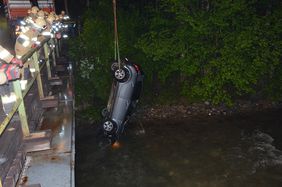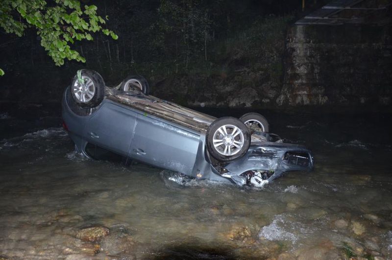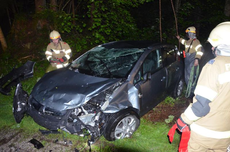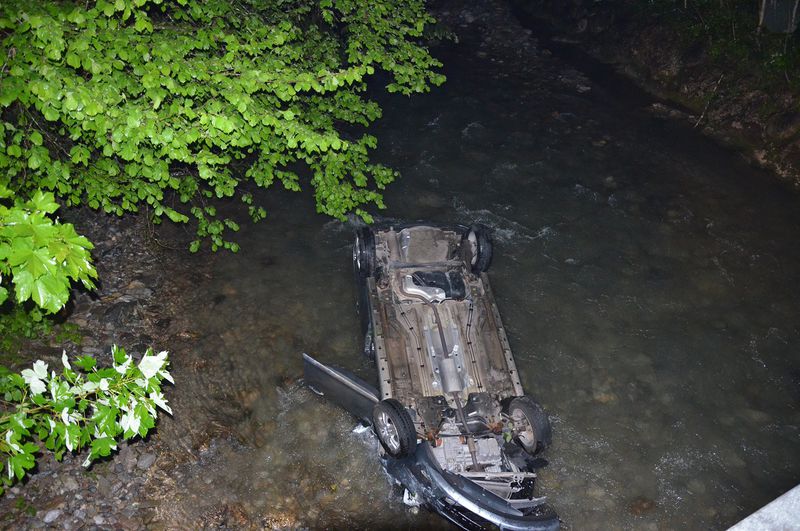Am Samstag den 28.05.2016 wurde die Feuerwehr Abtenau von der Landes - Alarm und Warnzentrale (LAWZ) Salzburg zu einer Fahrzeugbergung alarmiert. Ein PKW ist direkt an der Köpplbrücke über die ca. 5m hohe Böschungsmauer in die Lammer gestürzt. Glücklicher Weise konnten sich die drei Insassen, trotz des hohen Wasserstandes der Lammer, aus dem am Dach liegenden Fahrzeug befreien. Das bereits anwesende Rote Kreuz Abtenau versorgte die unbestimmten Grades verletzten Personen. Die Arbeiten der Feuerwehr beschränkten sich auf das Ausleuchten der Unfallstelle und die Bergung des völlig zerstörten Fahrzeuges aus dem Flussbett der Lammer. Unter Zuhilfenahme eines Kranes, eines privaten Unternehmens konnte die Bergung rasch durchgeführt werden. Abschließend wurde der Unfallbereich von Wrackteilen gesäubert und die Batterie des Unfallfahrzeuges abgeklemmt. Gegen 05.10 Uhr konnte dieser Einsatz beendet werden.