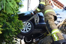 Eine nicht gezogene Handbremse bescherte der FF Abtenau an diesem Tag einen Einsatz. Der Mercedes rollte rückwärts über den Parkplatz, durchbrach ein Geländer und ragte danach mit beiden Hinterrädern über eine Mauer. Der Wagen saß auf der Bodenplatte auf und drohte ganz abzustürzen. Der Besitzer rief in seiner Verzweiflung die Feuerwehr. Die FF Abtenau konnte den Wagen mit Hilfe eines Krans rasch bergen. Am Wagen entstand durch das Touchieren des Zauns ein erheblicher Schaden. Nach 45 Minuten war der Einsatz beendet.