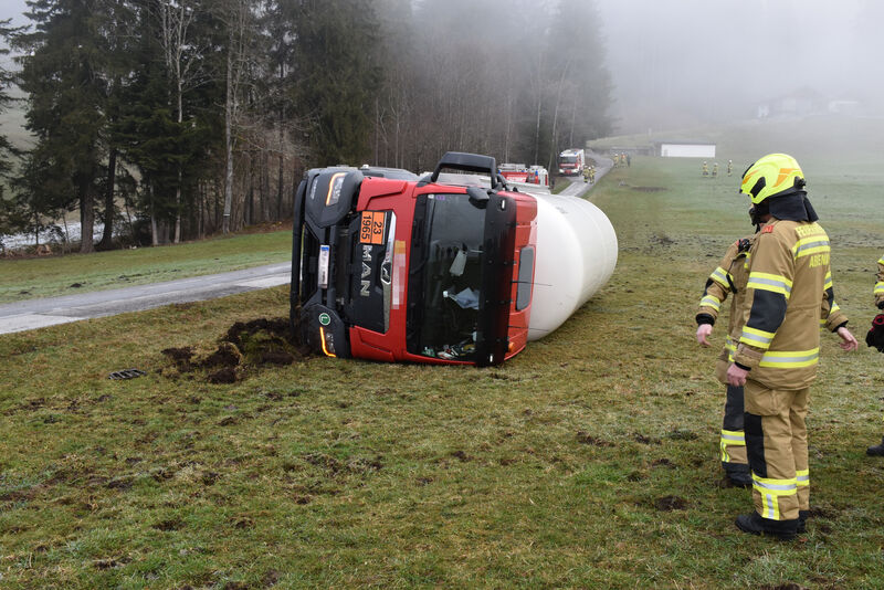 Am Mittwochmorgen wurde der LZ Voglau zu einer LKW Bergung im Ortsteil Pichl alarmiert. An der Einsatzstelle wurde vom Einsatzleiter Voglau ein umgestürzter Tankwagen, beladen mit dem Flüssiggas Butan vorgefunden. In weiterer Folge wurde die FF Abtenau zur Unterstützung alarmiert. Der Lenker wurde beim Unfall nicht verletzt. Die Einsatzstelle wurde nach dem Eintreffen der Feuerwehren, Roten Kreuz und Polizei großräumig abgesperrt. Anschließend wurde ein 2-facher Brandschutz aufgebaut. Für die sichere Entleerung des vollen Tankwagens wurde ein zweiter Tankwagen an die Einsatzstelle beordert. Zusätzlich mussten Spezialkräfte der Werkfeuerwehr Chemiepark Gendorf aus Bayern sowie der Gefahrgutzug des Bezirkes Tennengau angefordert werden.