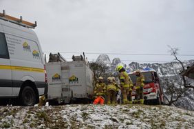 Gleich nach der Alarmierung legten die erstanrückenden Männer die Schneeketten am Rüstlösch- und Tanklöschfahrzeug an, um sicher an die Einsatzstelle zu gelangen. Der Klein LKW konnte innerhalb kurzer Zeit mit der Einbauseilwinde durch Umlenken geborgen werden. Der Anhänger wurde mit der Einbauseilwinde gesichert und mit einem Hubzug aufgestellt. Danach zog die Feuerwehr auch den Anhänger mit der Einbauseilwinde zur Straße. Nach der Bergung wurden noch beide Fahrzeuge gewendet. Danach konnte der Fahrer wieder in Richtung Tal fahren. Da der Wagen an dem einen Baum hängen blieb, hielt sich der Schaden in Grenzen. Ansonsten wäre das Gefährt ca. 50 Meter abgestürzt.