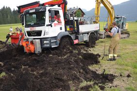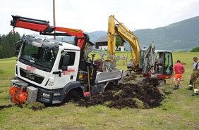 Zu Mittag wurde die FF Abtenau zu einer LKW Bergung gerufen. Ein Subunternehmer der Salzburg AG war beim Aufstellen von Strommasten in einem aufgeweichten Feld versunken. Der Lenker konnte sich auch mit Hilfe seiner Seilwinde nicht befreien. Der Einsatzleiter der Feuerwehr stellte bei der Ankunft fest, dass die technischen Hilfsmittel der Feuerwehr für diese Bergung nicht ausreichen und somit wurde ein Bagger eines örtlichen Transportunternehmers hinzugezogen. Die Feuerwehr unterstützte die Bergung mit Material und Anschlagmitteln und schaufelte davor die Räder des LKW frei. Nach rund 1,5 Stunden war der LKW geborgen und die Feuerwehr rückte wieder ein. Der entstandene Flurschaden wird von der Versicherung des Verursachers beglichen.