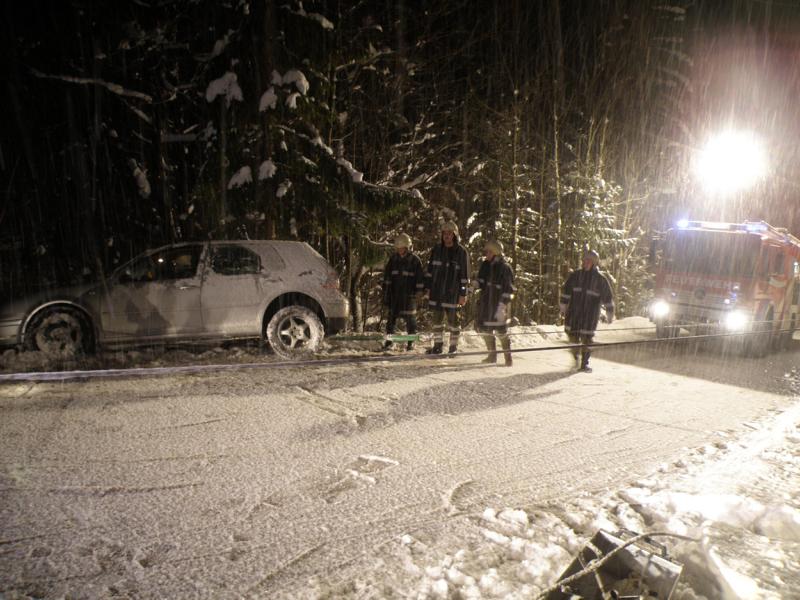 An diesem Morgen wurden die Mitglieder der FF Abtenau um 05.30 Uhr über Rufempfänger zu einer PKW Bergung im Ortsteil Radochsberg in der Nähe der Kirche alarmiert. Eine Lenkerin hatte wegen der Schneefahrbahn die Kontrolle über ihren Wagen verloren und kam von der Straße ab. Der PKW durchschlug die Schneewand und kam im tiefen Schnee an einem Baum zum Stillstand.