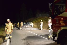 Die Feuerwehr Abtenau wurde um 0:51 Uhr zu einem Verkehrsunfall mit eingeklemmter Person mittels Sirene und Rufempfänger auf der B162 im Bereich Regenbogenland (ehemaliger Mooswirt) alarmiert. Der Einsatzleiter konnte an der Einsatzstelle feststellen, dass die eingeklemmte Person bereits von den Sanitätern des Roten Kreuzes befreit wurde. Somit bestand der Auftrag der Feuerwehr die Unfallstelle abzusichern und die Verkehrswege wieder freizumachen. Der Fahrzeuglenker kam mit seinem PKW von der Bundesstraße ab, touchierte einen Baum, überschlug sich und blieb auf dem Dach liegen. Durch das Fahrzeug war die Bundestraße total gesperrt. Nach der Unfallaufnahme der Polizei wurden die ausgelaufenen Betriebsmittel gebunden und das Fahrzeug wieder auf die Räder gestellt. Der PKW wurde von einem Abschleppunternehmen abgeholt. Der verunfallte Fahrzeuglenker wurde mit der Rettung in das Krankenhaus gebracht. Nach dem Reinigen der Unfallstelle konnte die Feuerwehr wieder einrücken und den Einsatz beenden.