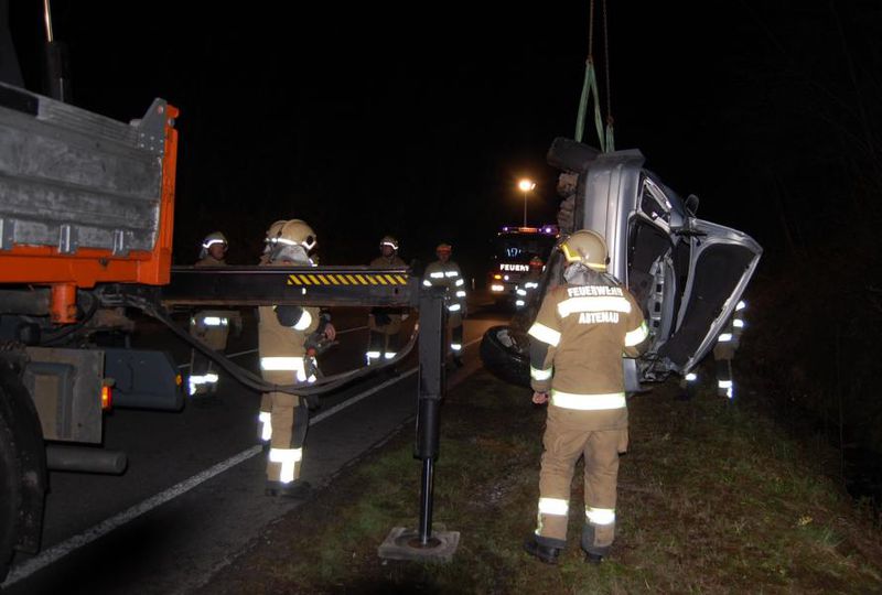 In der Nacht zum Karfreitag kam ein PKW Lenker mit seinem Fahrzeug am "Raingraben" ins Schleudern und stürzte rückwärts in das Bachbett neben der Bundesstraße. Der Aufprall auf einen großen Stein war derart heftig, dass der Wagen total deformiert wurde. Nachkommende Autolenker alarmierten die Einsatzkräfte und konnten den Verletzten aus dem Fahrzeug befreien. Die FF Abtenau sicherte beim Eintreffen die Unfallstelle ab und baute Beleuchtungen und einen Brandschutz auf. Für die Verkehrsregelung wurden Lotsen abgestellt. Danach entfernte die Feuerwehr Wrackteile aus dem Bach und kontrollierte den Austritt von Betriebsflüssigkeiten. Gleichzeitig wurde die Bergung des Fahrzeuges, welche mit einem Kran durchgeführt wurde, vorbereitet. Der Verletzte wurde nach der Erstversorgung in das Krankenhaus nach Salzburg geliefert. Während der Bergungsarbeiten war die Bundesstraße nur erschwert passierbar.