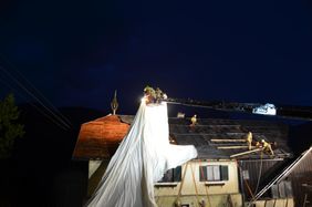 Am Montagabend ging über der Nachbargemeinde Annaberg ein schweres Unwetter nieder. Da die FF Annaberg und der LZ Lungötz mehrere Einsätze zu erledigen hatten, wurde auch die FF Abtenau zur Unterstützung angefordert. Beim Hagenbauer deckte der starke Sturm das Wirtschaftsgebäude und das Wohnhaus ab. Die FF Abtenau unterstütze die Feuerwehr Annaberg mit der Drehleiter beim Eindecken des Gebäudes. Nach ca. 2 Stunden konnten die großen Abdeckplanen so angebracht werden, dass der starke Regen keine weiteren Schäden am Gebäude verursachte.