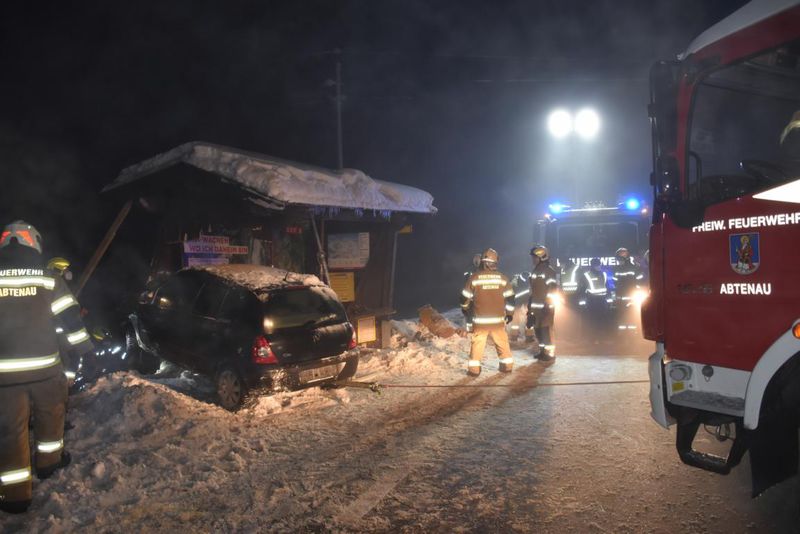 Am späten Nachmittag des 7.12.2021 kam ein Kleinwagen auf der B162 im Ortsteil Fischbach ins Schleudern und prallte frontal gegen ein Buswartehäuschen. Glücklicher Weise überstanden die drei Insassen den Aufprall unverletzt. Die Aufgaben der Feuerwehr waren die Verkehrsabsicherung sowie die Fahrzeugbergung. Nachdem das Buswartehäuschen stabilisiert war, konnte der Kleinwagen mithilfe der Einbauseilwinde des Rüstlöschfahrzeuges geborgen werden. Nach der Fahrzeugbergung wurde das Bauwerk mit einem privaten Kran angehoben und ein weiterer Metallsteher untergestellt. Im Anschluss dieser Arbeiten reinigte die Feuerwehr die Unfallstelle und half bei der Verladung auf einen Abschleppwagen.