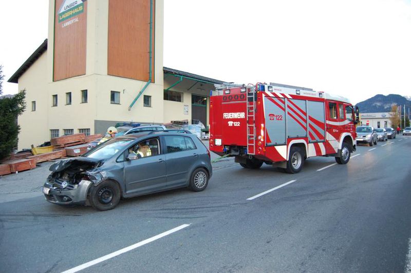 An der Kreuzung beim Lagerhaus stießen am Freitag drei Fahrzeuge zusammen. Da die Fahrzeuge die Bundesstraße blockierten und bei zwei Fahrzeugen Betriebsflüssigkeiten ausliefen wurde die Feuerwehr alarmiert. Nachdem die Polizei die Unfallaufnahme beendet hatte, begann die Feuerwehr mit den Aufräumungsarbeiten. Flüssigkeiten wurden gebunden, Wrackteile entfernt und die Fahrzeuge zu einem nahen Autohändler geschleppt. Während dieser Arbeiten regelte die Feuerwehr den Verkehr. Bei diesem Unfall wurde eine Person verletzt und musste vom Roten Kreuz abtransportiert werden. An zwei Unfallfahrzeugen entstand ein Totalschaden.
