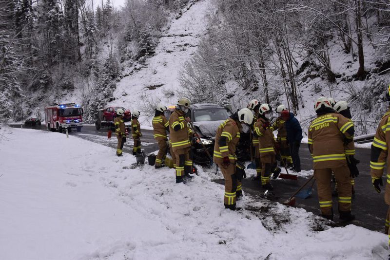 Die schneeglatte Fahrbahn dürfte der Grund für einen Frontalzusammenstoß zweier Autos am Raingraben gewesen sein. Die Feuerwehr Abtenau, welche um 07:11 Uhr alarmiert wurde, sicherte die Unfallstelle ab und lotste den Verkehr einspurig an der Unfallstelle vorbei. Eine verletzte Person musste vom Rote Kreuz im Rettungswagen versorgt und abtransportiert werden. Die Feuerwehr band ausgelaufene Betriebsmittel und entfernte Scherben und Wrackteile von der Fahrbahn. Ebenso wurden die Abschleppdienste bei der Verladung der total beschädigten Fahrzeuge unterstützt. Nach rund einer Stunde war der Einsatz beendet.