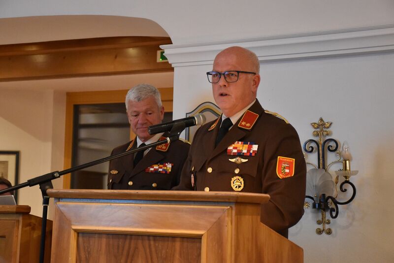 Der wiedergewählte OFK Albin Bachler gab in seiner Ansprache einen Rückblick auf seine vergangenen zehn Jahre als Ortsfeuerwehrkommandant. Dabei ließ er zahlreiche Ereignisse, Entwicklungen und Herausforderungen dieser Zeit Revue passieren. Er ging auf einige prägende Einsätze näher ein und schilderte eindrucksvoll die Situationen, mit denen die Kameradinnen und Kameraden der Feuerwehr in den letzten Jahren konfrontiert waren.