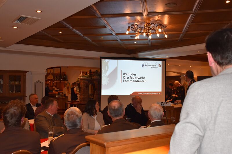 Nach Ablauf der fünfjährigen Funktionsperiode des Ortsfeuerwehrkommandanten stand heuer die Wahl des Kommandanten auf der Tagesordnung. HBI Albin Bachler stellte sich dabei erneut der Wahl. Die anwesenden Mitglieder der Freiwilligen Feuerwehr Abtenau sowie des Löschzuges Voglau sprachen ihm mit überwältigender Mehrheit ihr Vertrauen aus und wählten ihn wieder zum Kommandanten. HBI Albin Bachler startet somit in seine dritte Funktionsperiode.