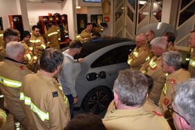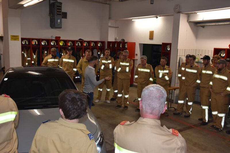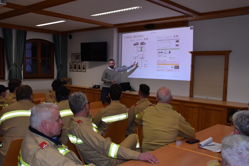 In einem informativen Theorieteil erläuterte er die Besonderheiten moderner Elektrofahrzeuge und ging dabei auf einsatzrelevante Aspekte bei Verkehrsunfällen sowie auf das richtige Vorgehen im Fall eines Fahrzeug- oder Batteriebrandes ein. Besonders hervorgehoben wurden dabei die umfangreichen Sicherheitsmaßnahmen und Schutzsysteme, mit denen alternativ angetriebene Fahrzeuge ausgestattet sind.