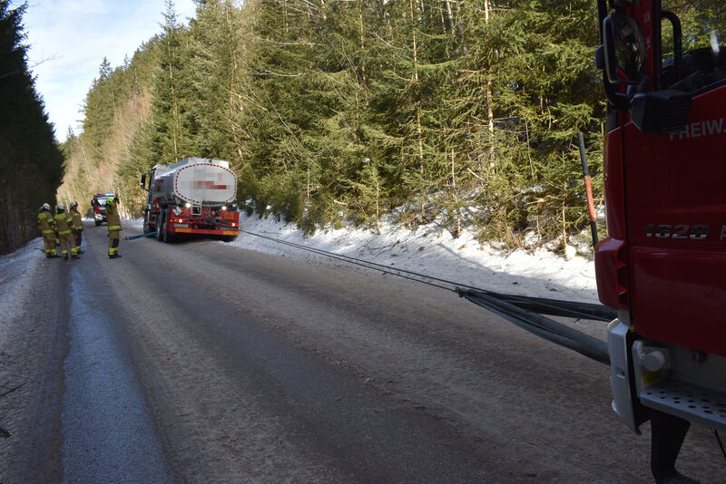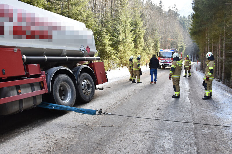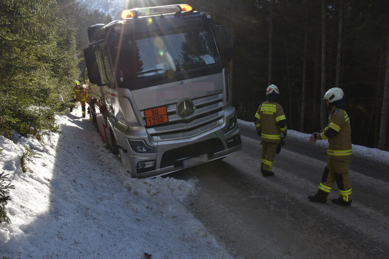 Am Freitagvormittag kam ein LKW Lenker mit seinem voll beladenen Fahrzeug von der Austraße ab und im Berggraben zu stehen. Nach der Erkundigung durch den Einsatzleiter wurde der Tanklastwagen mit einem Hubzug gegen Kippen gesichert. Im Anschluss konnte dieser durch Einscheren der Seilwinde des Rüstlöschfahrzeuges wieder zurück auf die Straße gezogen werden. Der Lenker konnte seine Fahrt im Anschluss fortsetzen. Für die Zeit der Bergung war die Austraße für zirka 20 Minuten gesperrt.