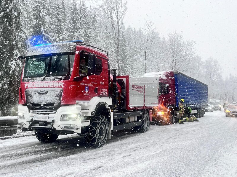 Am Vormittag wurde die FF Abtenau von der Polizei zu Hilfe gerufen. Auf der B162 im Bereich Voglauberg und auf der B166 im Bereich Raingraben blieben Lenker mit ihren Schwerfahrzeugen hängen und verursachten somit ein Verkehrschaos. Die Feuerwehr Abtenau schleppte die Sattelschlepper mit Hilfe der Schleppstange zu nahen Abstellplätzen. Die Polizei unterstütze die Feuerwehr und regelte den Verkehr. Nach rund 1,5 Stunden waren die Arbeiten beendet und Last Abtenau rückte wieder ein.