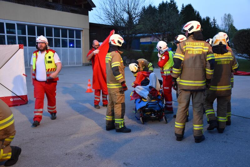 Bei der Übungsbesprechung wurde der Ablauf der Übung besprochen und den Mitwirkenden des Roten Kreuzes und der Feuerwehr für den sehr guten Ablauf der Übung gedankt. Ein großer Dank galt der Familie Auer (Abfallwirtschaft) für die zur Verfügungstellung des Firmengeländes und der stetigen Unterstützung der FF Abtenau.